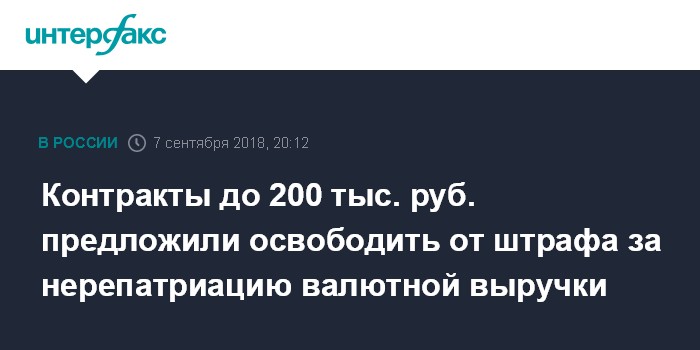 Контракты до 200 тыс. руб. предложили освободить от штрафа за нерепатриацию валютной выручки