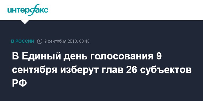 В Единый день голосования 9 сентября изберут глав 26 субъектов РФ