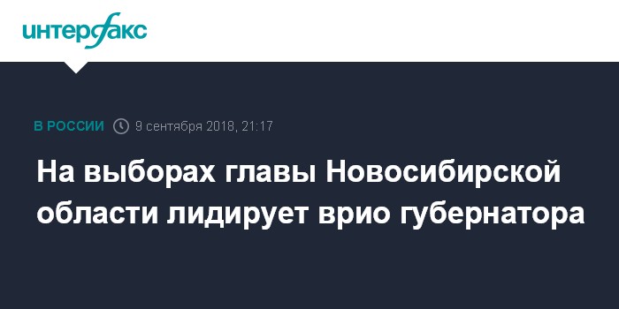 Москва. 9 сентября. INTERFAX.RU - После обработки 91,41% протоколов участковых комиссий на досрочных выборах губернатора Новосибирской области лидирует врио главы региона Андрей Травников, сообщила журналистам председатель облизбиркома Ольга Благо.
