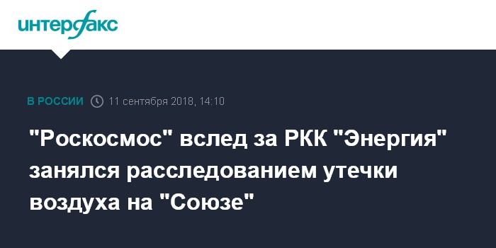 "Госкорпорация "Роскосмос" сформировала специальную комиссию по расследованию нештатной ситуации, связанной с утечкой воздуха, возникшей на борту транспортного пилотируемого корабля "Союз МС-09", находящегося в составе МКС", - говорится в заявлении распространенном во вторник.