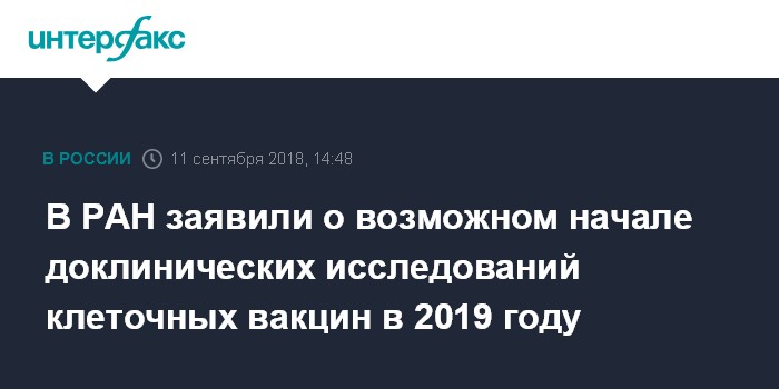 В РАН заявили о возможном начале доклинических исследований клеточных вакцин в 2019 году