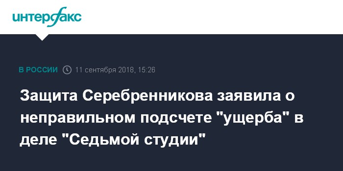 Москва. 11 сентября. INTERFAX.RU - Защита обвиняемого в мошенничестве на 133 млн рублей художественного руководителя "Гоголь-центра", режиссера Кирилла Серебренникова утверждает, что следствие неправильно посчитало возможную сумму ущерба по делу.