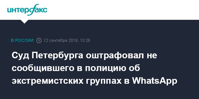 Суд Петербурга оштрафовал не сообщившего в полицию об экстремистских группах в WhatsApp