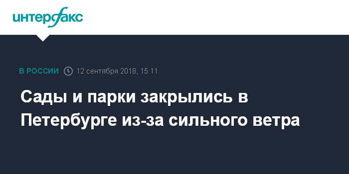 Москва. 12 сентября. INTERFAX.RU - Сады и парки Санкт-Петербурга временно закрыты из-за сильного ветра, сообщили "Интерфаксу" в среду в пресс-службе городского комитета по благоустройству.