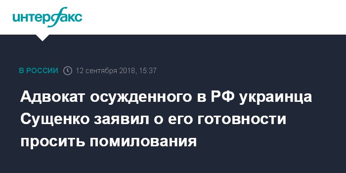Адвокат осужденного в РФ украинца Сущенко заявил о его готовности просить помилования