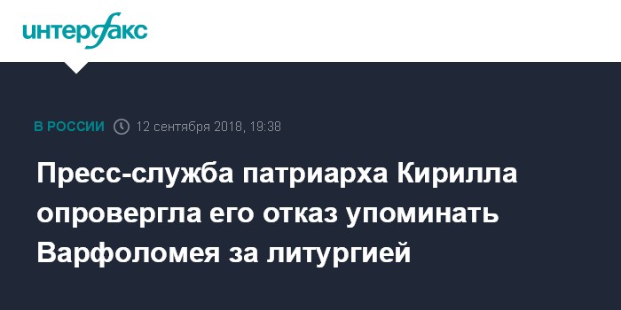 Москва. 12 сентября. INTERFAX.RU - Пресс-секретарь патриарха Кирилла священник Александр Волков опроверг мнение наблюдателей, будто предстоятель уже сделал первый шаг к разрыву отношений с Константинополем - впервые не упомянул патриарха Варфоломея за литургией.