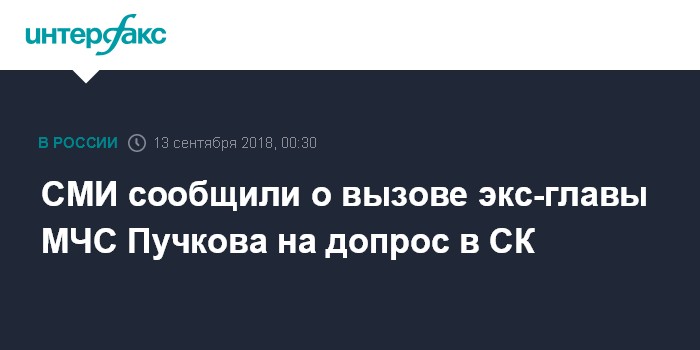 Москва. 13 сентября. INTERFAX.RU - Экс-глава МЧС Владимир Пучков вызван на допрос в следственный комитет, сообщил в среду телеканал РЕН-ТВ со ссылкой на свои источники.