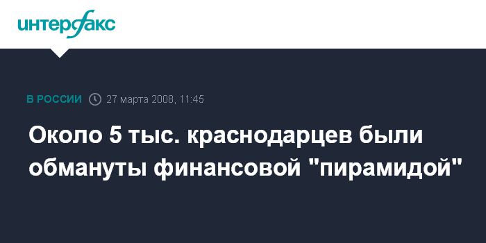 Краснодар. 27 марта. INTERFAX.RU - Сотрудники Управления по борьбе с экономическими преступлениями (УБЭП) ГУВД по Краснодарскому краю пресекли деятельность фирмы, организовавшей финансовую "пирамиду".