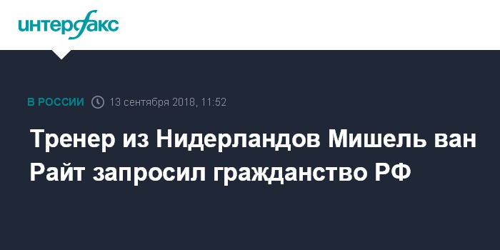Тренер из Нидерландов Мишель ван Райт запросил гражданство РФ