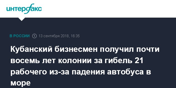 Кубанский бизнесмен получил почти восемь лет колонии за гибель 21 рабочего из-за падения автобуса в море
