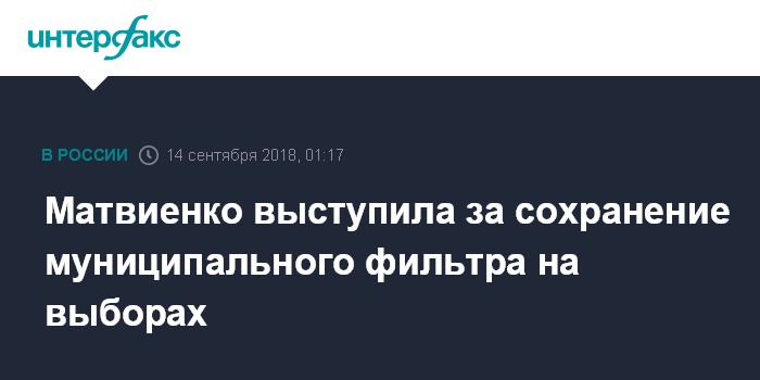 Москва. 14 сентября. INTERFAX.RU - Спикер Совета Федерации Валентина Матвиенко считает, что не стоит отказываться от муниципального фильтра на выборах, но следует внимательно изучить практику его применения.