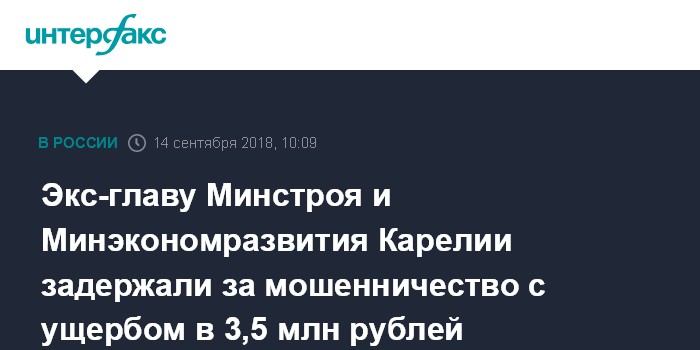 Экс-главу Минстроя и Минэкономразвития Карелии задержали за мошенничество с ущербом в 3,5 млн рублей