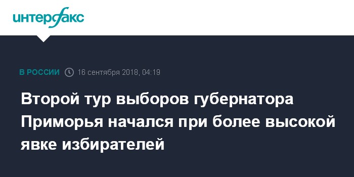 "Явка на 10:00 составил 5,08 %. Это немного больше, чем в первом туре, тогда за первые два часа проголосовали 4,9% ", - сообщила журналистам секретарь избирательной комиссии Приморского края Наталья Камаева.