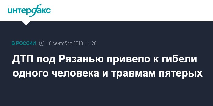 Москва. 16 сентября. INTERFAX.RU - Один человек погиб и пятеро травмированы в результате ДТП на трассе М-5 "Урал" в Рязанской области, сообщили "Интерфаксу" в региональном Управлении МВД России.