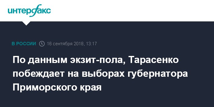Москва. 16 сентября. INTERFAX.RU - По данным опросов на выходе из избирательных участков, врио губернатора Приморского края Андрей Тарасенко побеждает во втором туре выборов главы региона.