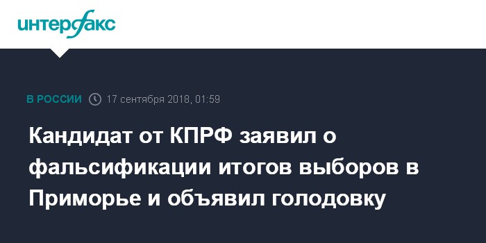 Кандидат от КПРФ заявил о фальсификации итогов выборов в Приморье и объявил голодовку