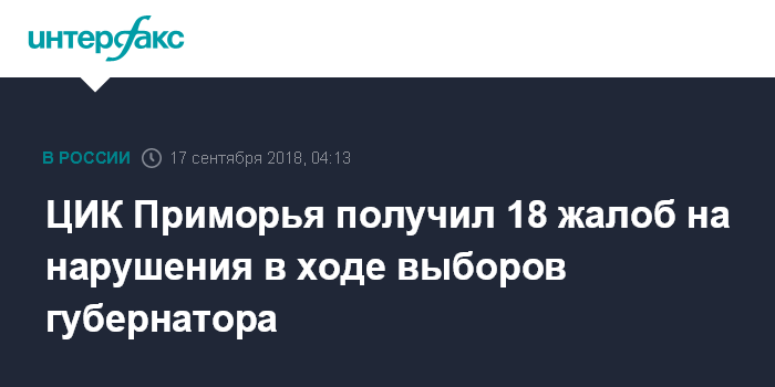 ЦИК Приморья получил 18 жалоб на нарушения в ходе выборов губернатора