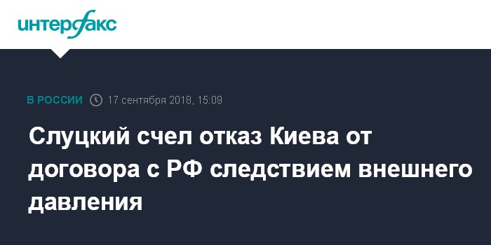 Москва. 17 сентября. INTERFAX.RU - Глава комитета Госдумы по международным делам Леонид Слуцкий уверен, что решение президента Украины Петра Порошенко положить конец действию договора о дружбе с Россией не является самостоятельным.