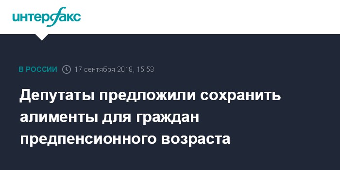 "Внесенным законопроектом предлагается сохранить возраст, с которого граждане приобретают право на алименты по нетрудоспособности, на уровне 55 лет для женщин и 60 лет для мужчин. Таким образом, указанное право будет распространяться не только на пенсионеров, как в действующем законодательстве, но и на граждан предпенсионного возраста", - отметил Крашенинников.