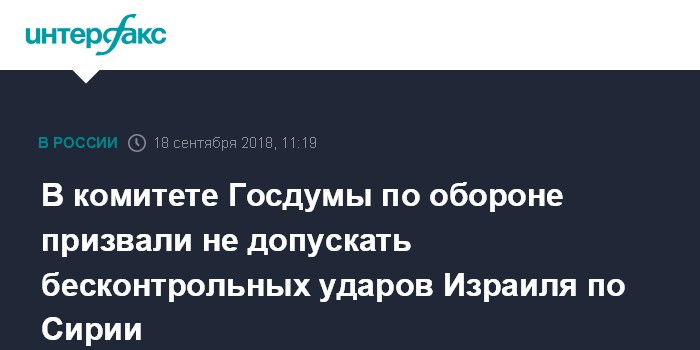 В комитете Госдумы по обороне призвали не допускать бесконтрольных ударов Израиля по Сирии