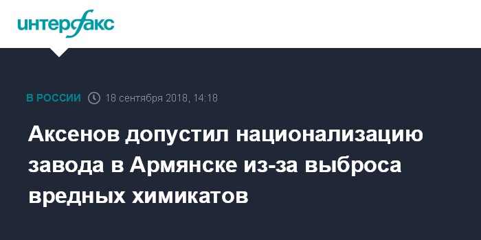 "Решения могут быть приняты абсолютно любые. Если собственник скажет, что материально не в состоянии (устранить последствия - ИФ) и вся нагрузка ляжет на плечи государства, будет стоять вопрос, в том числе, о принятии завода в государственную собственность республики Крым. Я не собираюсь за частников тратить средства, вкладывать без понятной перспективы", - сказал Аксенов журналистам во вторник в Симферополе.