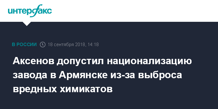Аксенов допустил национализацию завода в Армянске из-за выброса вредных химикатов