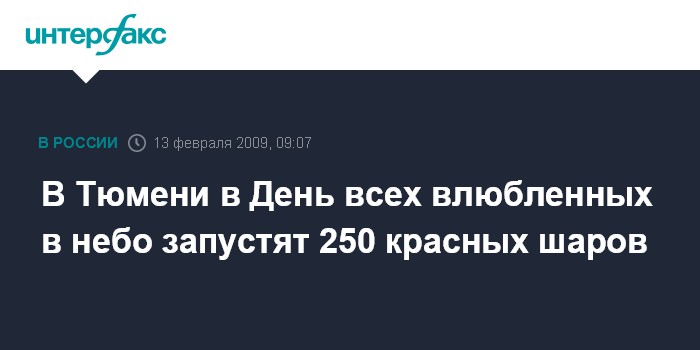 Москва. 13 февраля. INTERFAX.RU - В Тюмени на Пешеходном бульваре 14 февраля пройдет акция для всех влюбленных.