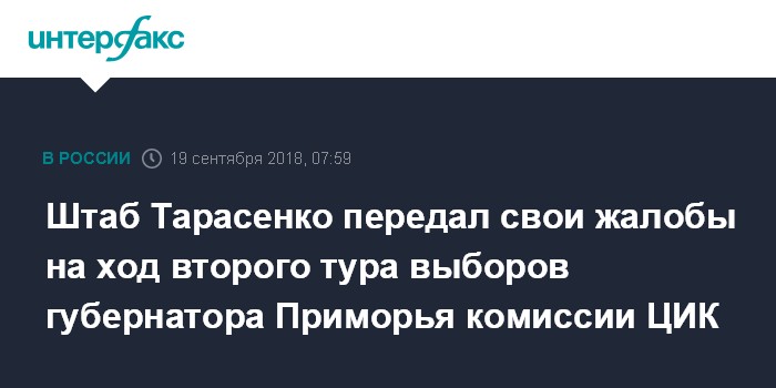 Штаб Тарасенко передал свои жалобы на ход второго тура выборов губернатора Приморья комиссии ЦИК