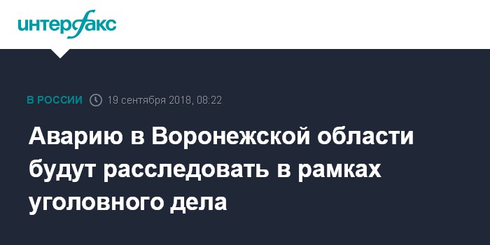 Москва. 19 сентября. INTERFAX.RU - Уголовное дело возбуждено в связи с ДТП в Воронежской области, в результате которого 5 человек погибли и 14 попали в больницу, сообщили "Интерфаксу" в пресс-службе ГУ МВД по региону в среду.