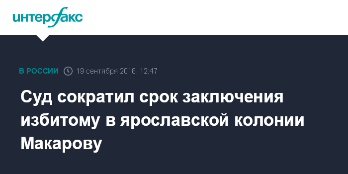 Суд сократил срок заключения избитому в ярославской колонии Макарову