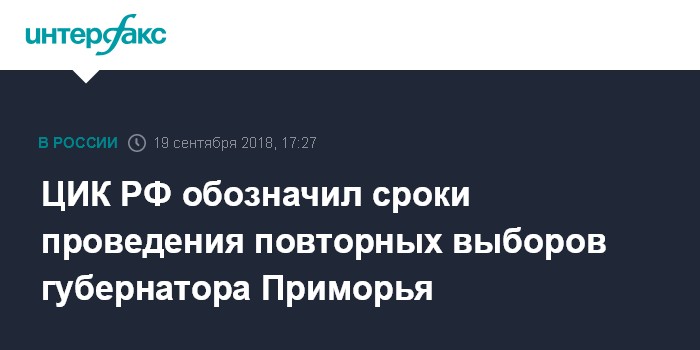 ЦИК РФ обозначил сроки проведения повторных выборов губернатора Приморья