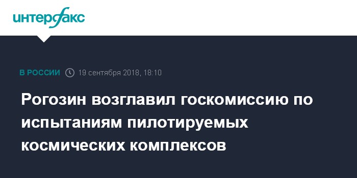 Москва. 19 сентября. INTERFAX.RU - Премьер РФ Дмитрий Медведев включил главу "Роскосмоса" Дмитрия Рогозина в состав госкомиссии по проведению летных испытаний пилотируемых космических комплексов, назначив его председателем указанной комиссии.