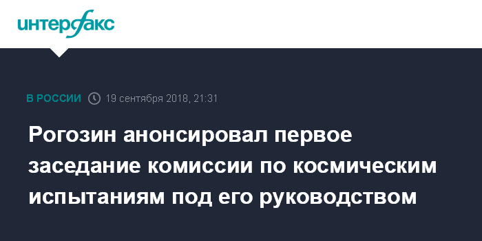 Москва. 19 сентября. INTERFAX.RU - Глава "Роскосмоса" Дмитрий Рогозин сообщил, что первое под его руководством заседание государственной комиссии по испытаниям пилотируемых космических комплексов состоится в пятницу.