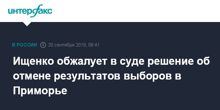 Москва. 20 сентября. INTERFAX.RU - Кандидат от КПРФ на выборах губернатора Приморья Андрей Ищенко намерен обжаловать в суде решение избиркома об отмене результатов выборов главы Приморья.