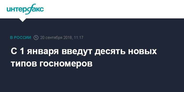 Москва. 20 сентября. INTERFAX.RU - С 1 января 2019 года десять новых типов государственных автомобильных номеров будут введены приказом Росстандарта, сообщает "Коммерсант" в четверг.