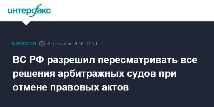ВС РФ разрешил пересматривать все решения арбитражных судов при отмене правовых актов