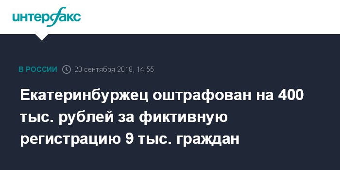 Екатеринбуржец оштрафован на 400 тыс. рублей за фиктивную регистрацию 9 тыс. граждан