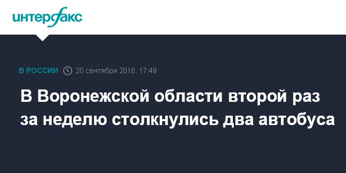 Ранее, 18 сентября, на 525 км автодороги М-4 "Дон" в Воронежской области столкнулись два пассажирских автобуса, следовавшие со стороны Москвы в Ставропольский край и Карачаево-Черкесию. В результате погибли пять жителей Карачаево-Черкесии, 14 человек были госпитализированы, из них пятеро после оказания медпомощи отпущены домой. Возбуждено два уголовных дела - по части 5 статьи 264 (нарушение правил дорожного движения и эксплуатации транспортных средств, повлекшее гибель двух и более лиц) и по части 3 статьи 238 УК РФ (оказание услуг, не отвечающих требованиям безопасности жизни или здоровья потребителей, повлекшие по неосторожности смерть пятерых лиц).