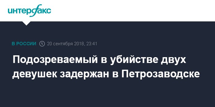 Москва. 20 сентября. INTERFAX.RU - Сотрудники уголовного розыска МВД по Республике Карелия при помощи следователей задержали 28-летнего мужчину, подозреваемого в убийстве двух девушек в Петрозаводске, говорится в сообщении на сайте республиканского СУ СКР.