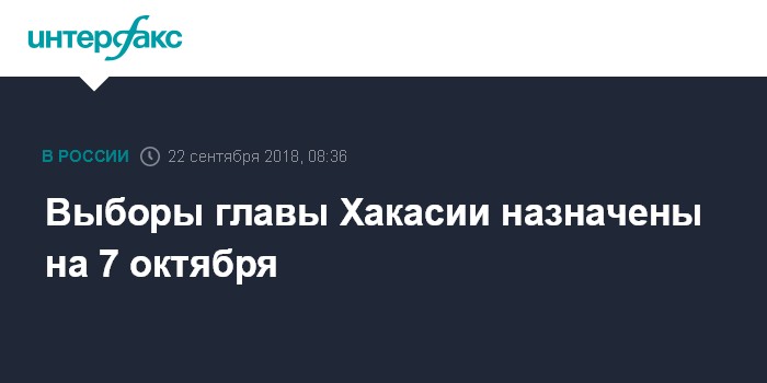 Москва. 22 сентября. INTERFAX.RU - Проведение второго тура выборов главы Хакасии после того, как свою кандидатуру снял руководитель республики Виктор Зимин, назначено на 7 октября 2018 года, сообщили в субботу агентству "Интерфакс" в пресс-центре регионального избиркома.