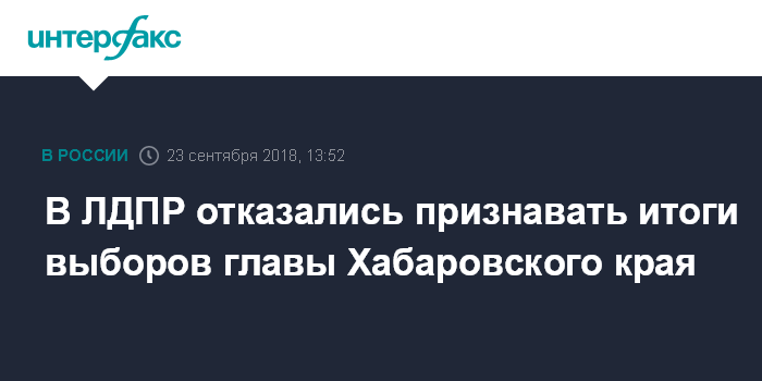 Москва. 23 сентября. INTERFAX.RU - В Либерально-демократической партии России заявили, что не признают результаты выборов в Хабаровском крае в связи с многочисленными нарушениями во время голосования.