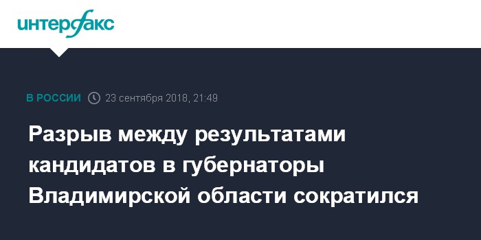 Разрыв между результатами кандидатов в губернаторы Владимирской области сократился