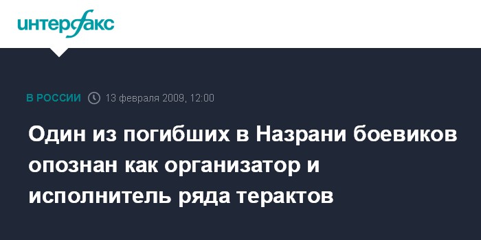 Москва. 13 февраля. INTERFAX.RU - Один из боевиков, погибших во время боя в Назрани в минувший четверг, опознан как Хасан Муталиев, сообщили агентству "Интерфакс-Юг" в пятницу в пресс-службе УФСБ по Ингушетии.