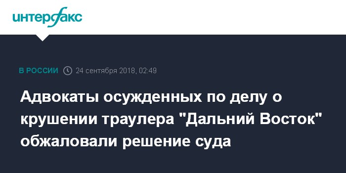 Адвокаты осужденных по делу о крушении траулера "Дальний Восток" обжаловали решение суда