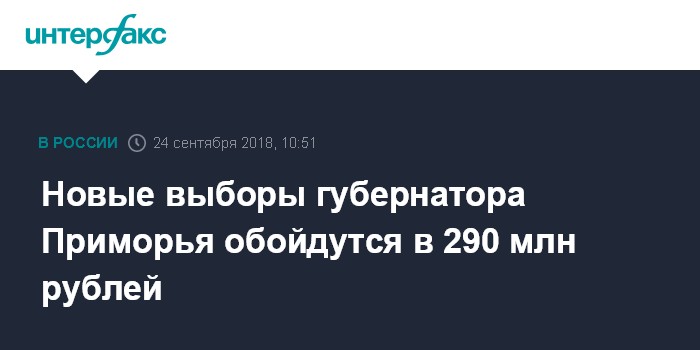 Москва. 24 сентября. INTERFAX.RU - Избирательная комиссия Приморья подсчитала, что на проведение новых выборов губернатора региона потребуется 290 млн рублей.