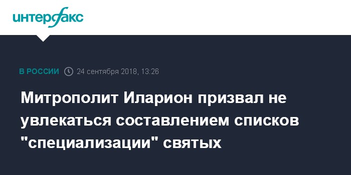 Москва. 24 сентября. INTERFAX.RU - Глава синодального Отдела внешних церковных связей митрополит Иларион призвал не воспринимать серьезно публикуемые списки "специализаций" святых, составленные по принципу "этот святой помогает от головной боли, а этот - от зубной", которые, как он отметил, часто основаны исключительно на домыслах.