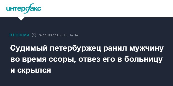 Судимый петербуржец ранил мужчину во время ссоры, отвез его в больницу и скрылся