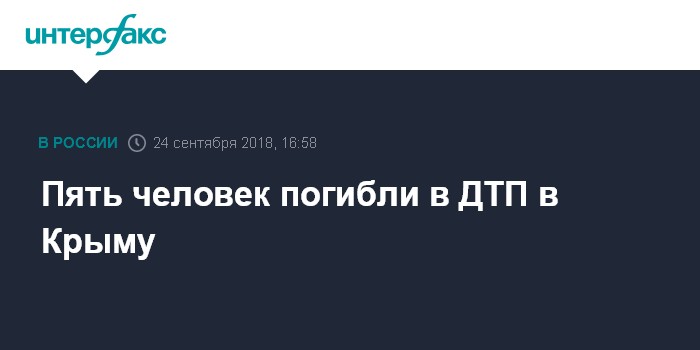 Представитель Минздрава Крыма подтвердил "Интерфаксу" информацию о пяти жертвах аварии и уточнил, что один человек получил травмы. "Пять человек погибли, одна пострадавшая - легкая степень тяжести, амбулаторно", - сказал собеседник агентства.