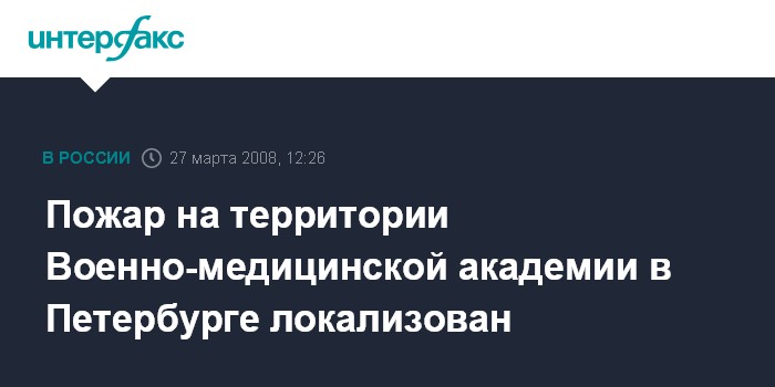 Санкт-Петербург. 27 марта. INTERFAX.RU - Пожар в здании на территории Военно-медицинской академии (ВМА) в Петербурге локализован, сообщает пресс-служба Главного управления МЧС по городу.