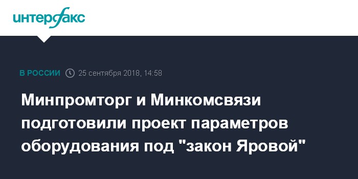 Минпромторг и Минкомсвязи подготовили проект параметров оборудования под "закон Яровой"